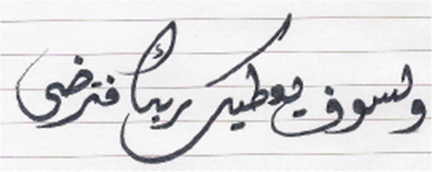 في محاولتي الأولى لتعلم الخط الديواني ، ركضتُ لأمي لتدعمني برأيها إذ أن خطها يُشبه الخط الديواني جداً جداً – ماشاء الله تبارك الله – فابتسمتْ حين رأتني أعرضُ لها أولى محاولاتي وأخبرتني بأنها في صباها كانت تجمع الجرائد والمجلات ، تنتقي الكلمات المكتوبة بخطّ جميل وتحاول تقليده ، وهذا ماجعل خطها يحظى بمكانة لدى أوساطنا جميعاً ، حديثها البسيط هذا شجعني على أن أُكمل هذه المحاولات ، واصلتُ التدريب بمشاهدة مقاطع للكاتب والخطاط أحمد خلف يشرح فيه كل حرف كيف يُكتب بالخط الديواني في أول الكلمة ووسطها وآخرها ، كما يفصّل لك الأشكال الكثيرة مثلاً لحرف الكاف حين يكون في آخر الكلمة ، فمنه تعلمت الأساسيات التي تستطيع أن تُكمل بعدها ، ظللتُ أتدرب أنا وريشتي المعضوضة المسكينة 5 أيام ، وخلالها استطعت أن أُنتج شيئاً متواضعاً رغم بساطته إلا أنني سعيدة بأنني تعلمتُ شيئاً يسيراً : ) وبإذن الله سأتقدم للأفضل فيه وسأصبح خطاطة ربما : ) كما أنني أنصحكم بعدم التدقيق في الصور التالية وإنما خذوا الأحرف على علاتها ^^